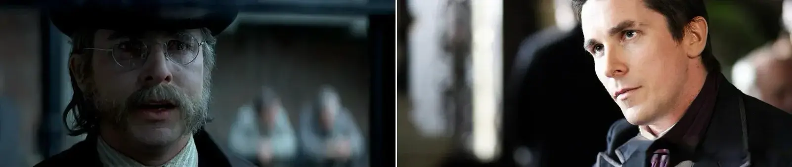 作为电影双主角的安吉尔和波顿,平均分享着电影的时间,没有明显的偏向哪个角色更多。他们在故事发展过程中都是双线交叉,每次的争斗拆台都是回合制,有来有回,逐步升级。感觉这种叙事方式都是导演刻意安排!把剧情时间安排得这么平均,在很多电影中都不太常见。这两种叙事特点在随后的电影《蝙蝠侠:黑暗骑士》(2008)运用得更是登峰造极。