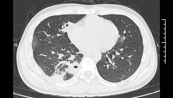 熬到第三天,小林已经烧到39℃,赶紧来到宁波大学附属第一医院就诊。接诊的丁群力主任医师一看他的症状,立刻安排了CT检查。结果显示:小林的肺里有十几个空洞,部分肺组织已经坏死拿柜配资,这是典型的血源性肺脓肿。