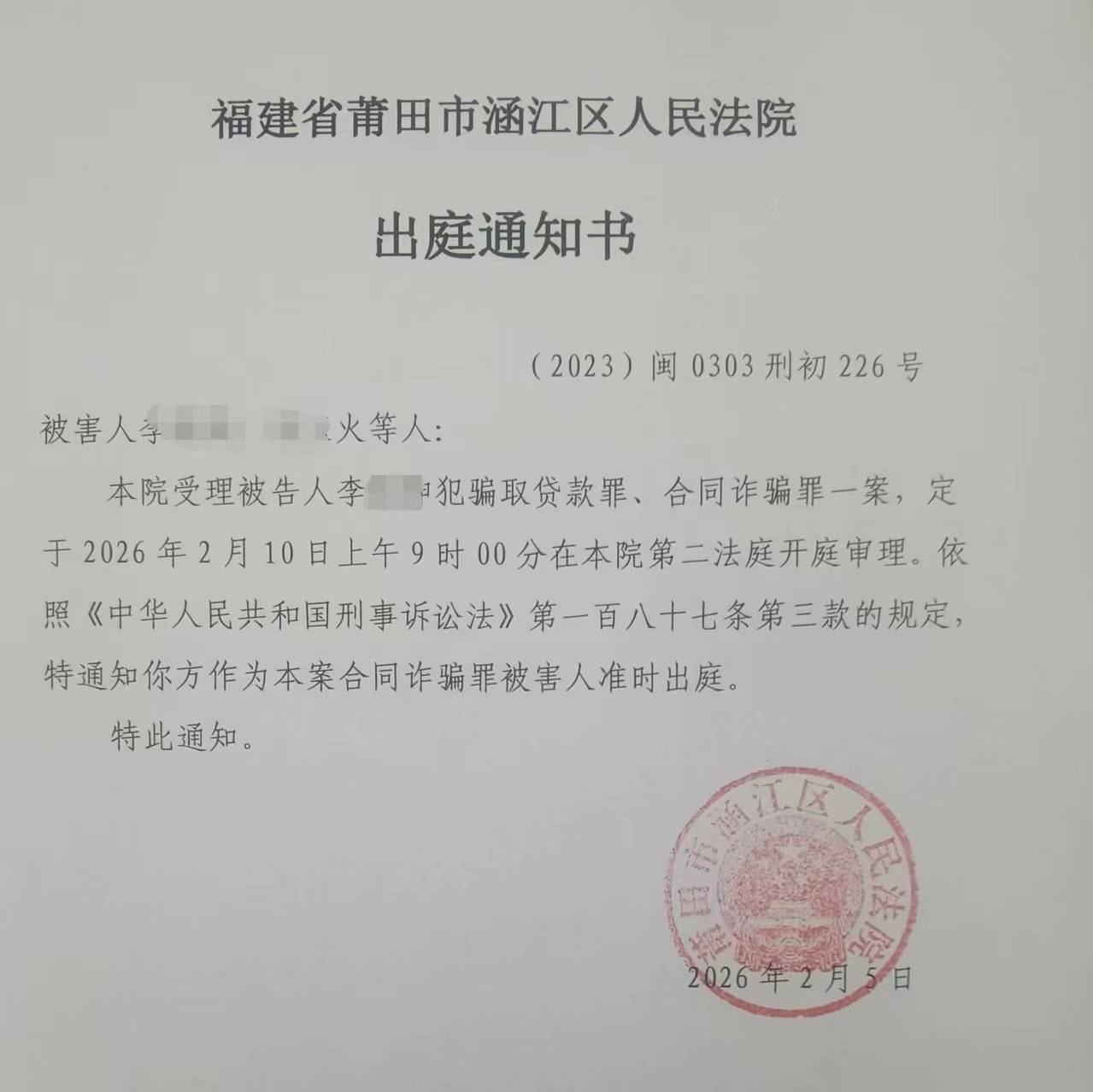 2026年2月10日,莆田涵江区人民法院第五次对此案进行审理,尚未宣判。